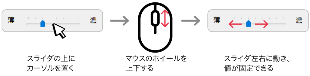 [環境設定]のスライダは、マウスのホイール操作で値の固定ができます。